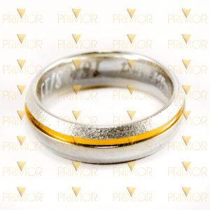 Aliança super moderna com detalhe polido e fosco ao mesmo tempo. Em baixo relevo possui banho de ouro amarelo 18k 750.
