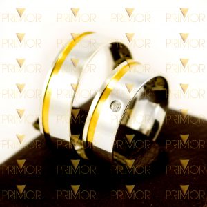 Lindo par de alianças em prata 950K com detalhe em ouro certificado 18k 750. Na peça feminina possui especial zircônia de 2mm.