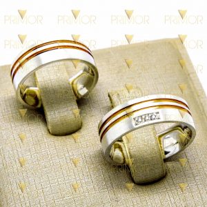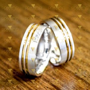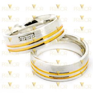 Modelo super elegante para presentear seus pais que tanto merecem. Junto do par, 3 diamantes na aliança feminina e dois frisos na cor do ouro que desejar!