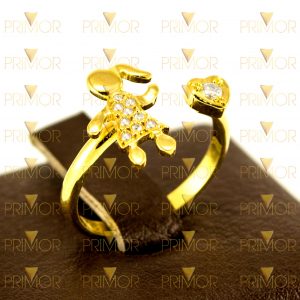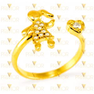 Anel de Ouro com Menino ou Menina e Coração cheio de pedras AN089
