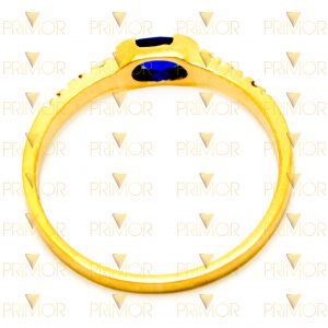 Anel de ouro feminino com 6 pedras e safira sintética no centro AN001