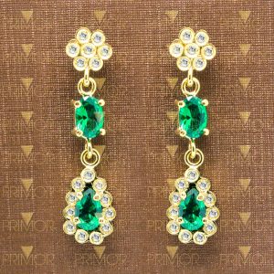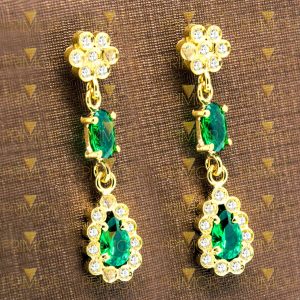Par de brincos maravilhoso com esmeraldas e ao seu redor 36 pedras a sua escolha (zircônias ou diamantes). Lapidação especial e a joia toda em ouro 18k certificado.