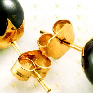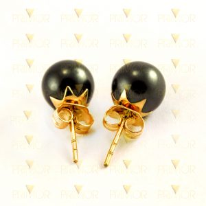 Lindo par de brincos com pérola negra sintética. Possui acabamento polido e com tarracha super reforçada e ouro certificado.