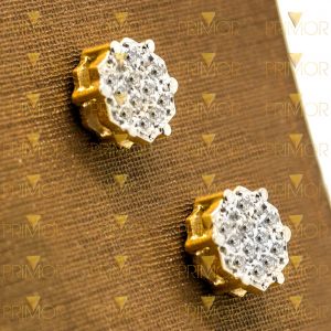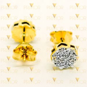 Par de brincos formato hexagonal com galeria contendo 28 pedras a sua escolha (diamantes ou zircônias).