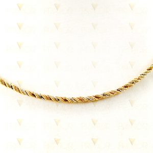 Corrente com ouro em três cores (amarelo, branco e rose) com malha tipo corda trançada medindo 45cm. Peça diferenciada e linda!