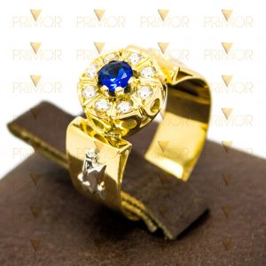Anel de formatura para mulheres que tem bom gosto. Possui lindo trabalhado na sua área superior e laterais do anel. Ao redor da pedra central do curso, 8 pedras de sua escolha (diamantes ou zircônias).