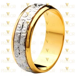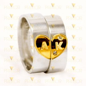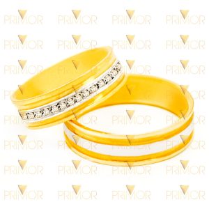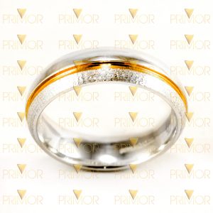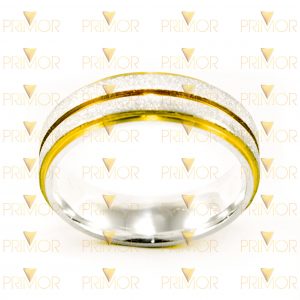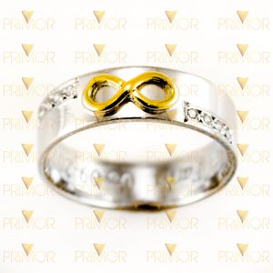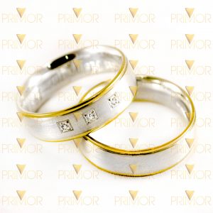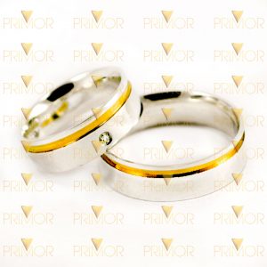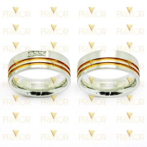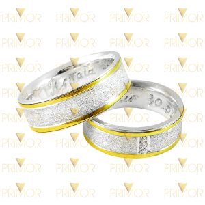 Aliança em Prata Diamantada com Detalhe Ouro Amarelo Certificado PT003